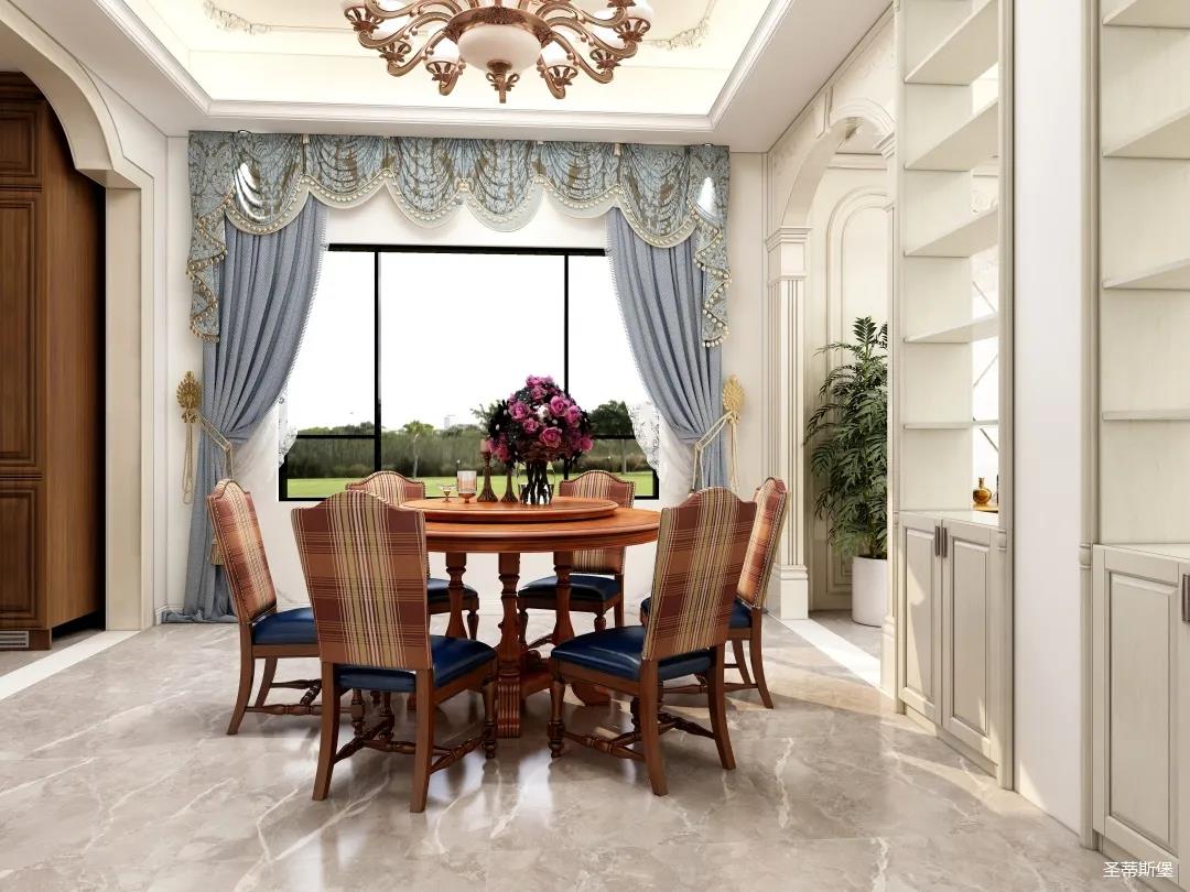 设计师将浪漫与庄严的气质从空间细节凸显,半圆形的拱门和转角的石砌,尽显雍容华贵。绿植摆设清新不落俗套,白色线条使入墙空间层次感更为强烈,实木与欧美装饰搭配的拱门,挑高的大面窗客厅,都令人心神荡漾。